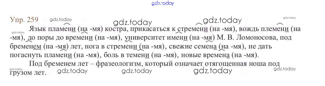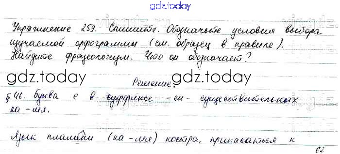На страницах сайта gdz.today вы найдете учебный и вспомогательный материал, направленный на улучшения знаний школьной программы. ГДЗ - онлайн мир знаний Упражнения Часть 1 259 Учебнику по Русскому языку для 6 класса Баранов, Ладыженская Просвещение, Просвещение 2015, 2022