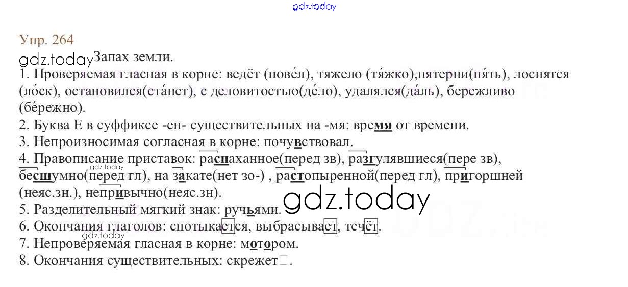 На страницах сайта gdz.today вы найдете учебный и вспомогательный материал, направленный на улучшения знаний школьной программы. ГДЗ - онлайн мир знаний Упражнения Часть 1 264 Учебнику по Русскому языку для 6 класса Баранов, Ладыженская Просвещение, Просвещение 2015, 2022