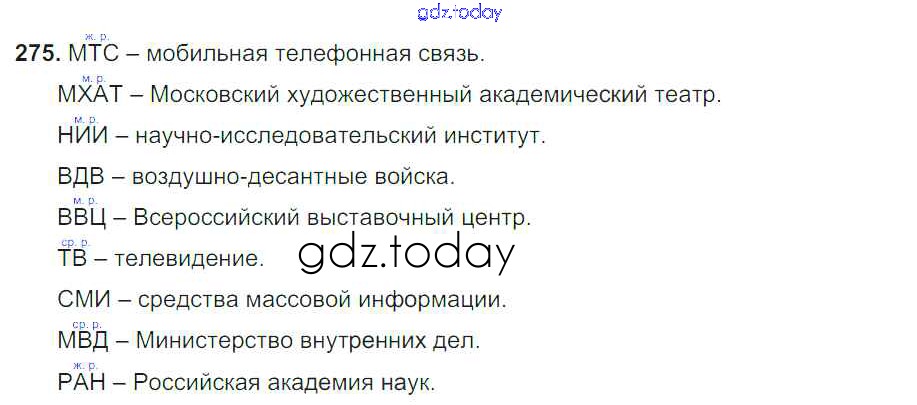 На страницах сайта gdz.today вы найдете учебный и вспомогательный материал, направленный на улучшения знаний школьной программы. ГДЗ - онлайн мир знаний Упражнения Часть 1 275 Учебнику по Русскому языку для 6 класса Баранов, Ладыженская Просвещение, Просвещение 2015, 2022