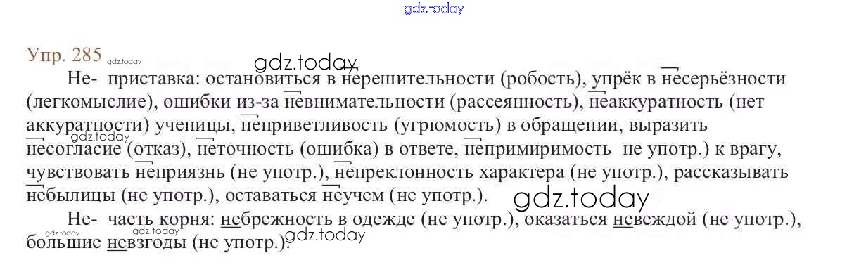На страницах сайта gdz.today вы найдете учебный и вспомогательный материал, направленный на улучшения знаний школьной программы. ГДЗ - онлайн мир знаний Упражнения Часть 1 285 Учебнику по Русскому языку для 6 класса Баранов, Ладыженская Просвещение, Просвещение 2015, 2022