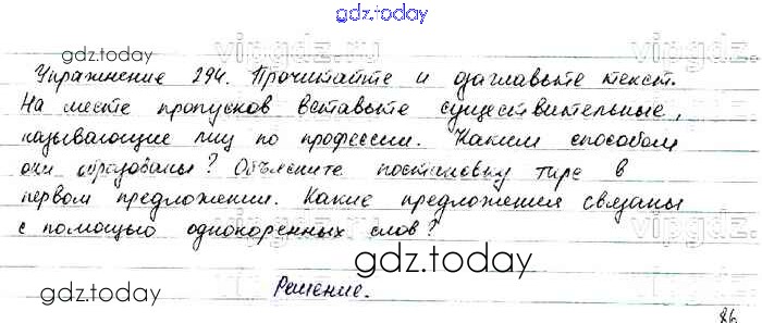 На страницах сайта gdz.today вы найдете учебный и вспомогательный материал, направленный на улучшения знаний школьной программы. ГДЗ - онлайн мир знаний Упражнения Часть 1 294 Учебнику по Русскому языку для 6 класса Баранов, Ладыженская Просвещение, Просвещение 2015, 2022