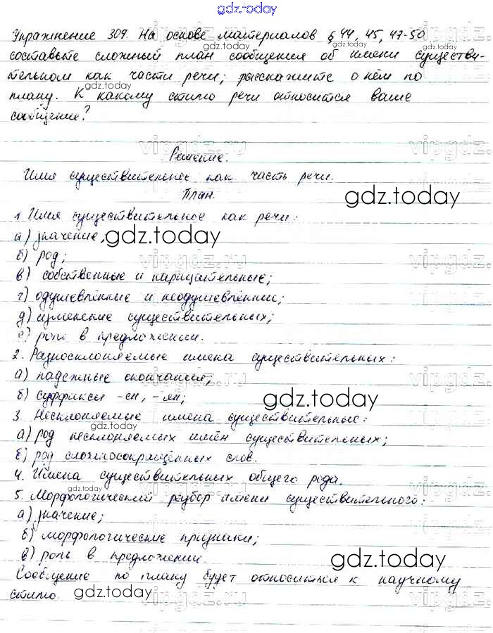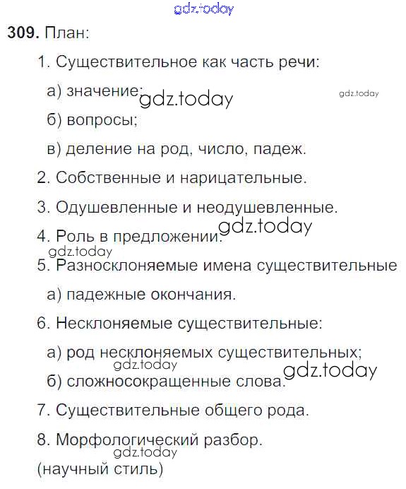На страницах сайта gdz.today вы найдете учебный и вспомогательный материал, направленный на улучшения знаний школьной программы. ГДЗ - онлайн мир знаний Упражнения Часть 1 309 Учебнику по Русскому языку для 6 класса Баранов, Ладыженская Просвещение, Просвещение 2015, 2022