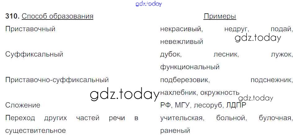 На страницах сайта gdz.today вы найдете учебный и вспомогательный материал, направленный на улучшения знаний школьной программы. ГДЗ - онлайн мир знаний Упражнения Часть 1 310 Учебнику по Русскому языку для 6 класса Баранов, Ладыженская Просвещение, Просвещение 2015, 2022