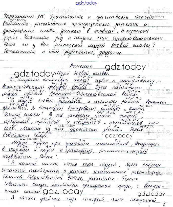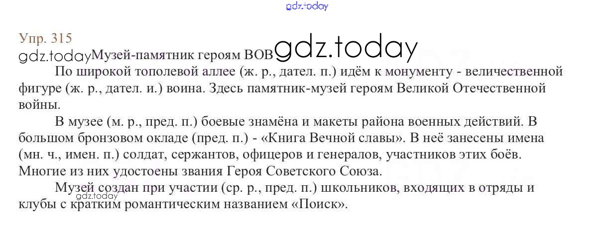 На страницах сайта gdz.today вы найдете учебный и вспомогательный материал, направленный на улучшения знаний школьной программы. ГДЗ - онлайн мир знаний Упражнения Часть 1 315 Учебнику по Русскому языку для 6 класса Баранов, Ладыженская Просвещение, Просвещение 2015, 2022