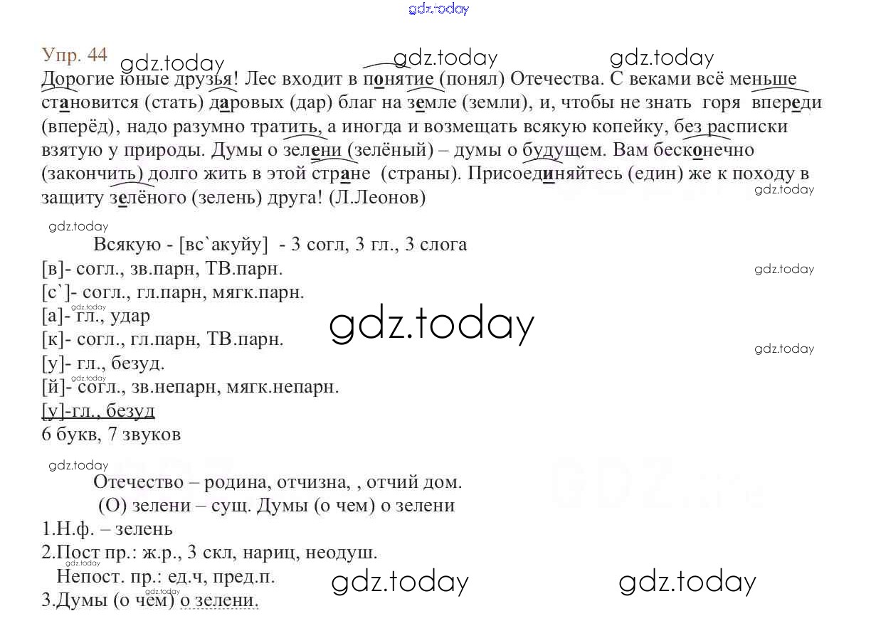 На страницах сайта gdz.today вы найдете учебный и вспомогательный материал, направленный на улучшения знаний школьной программы. ГДЗ - онлайн мир знаний Упражнения Часть 1 44 Учебнику по Русскому языку для 6 класса Баранов, Ладыженская Просвещение, Просвещение 2015, 2022