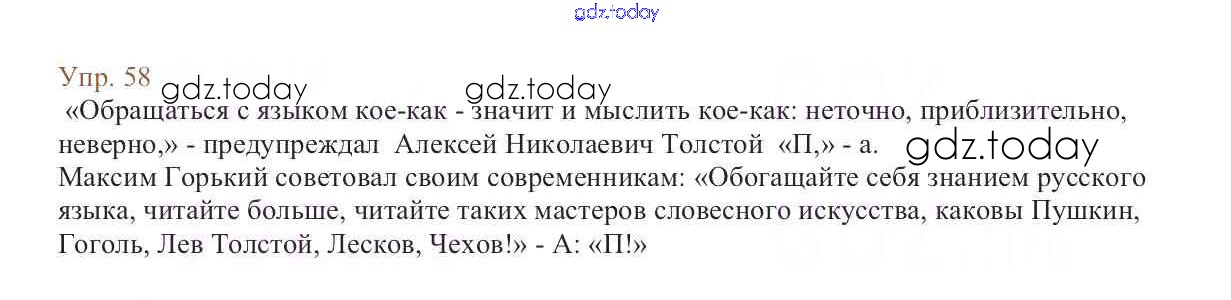 На страницах сайта gdz.today вы найдете учебный и вспомогательный материал, направленный на улучшения знаний школьной программы. ГДЗ - онлайн мир знаний Упражнения Часть 1 58 Учебнику по Русскому языку для 6 класса Баранов, Ладыженская Просвещение, Просвещение 2015, 2022