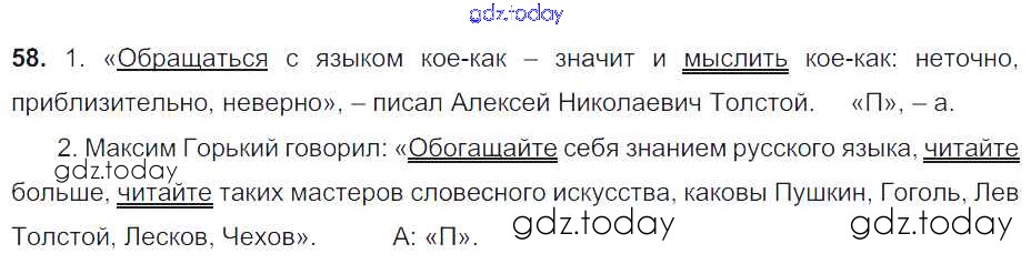 Ответы к Упражнения Часть 1 58 Учебнику по Русскому языку для 6 класса Баранов, Ладыженская Просвещение, Просвещение 2015, 2022