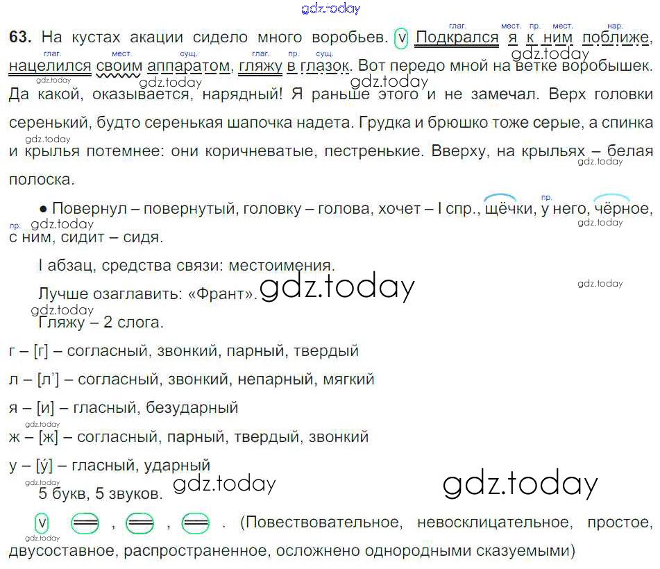 На страницах сайта gdz.today вы найдете учебный и вспомогательный материал, направленный на улучшения знаний школьной программы. ГДЗ - онлайн мир знаний Упражнения Часть 1 63 Учебнику по Русскому языку для 6 класса Баранов, Ладыженская Просвещение, Просвещение 2015, 2022