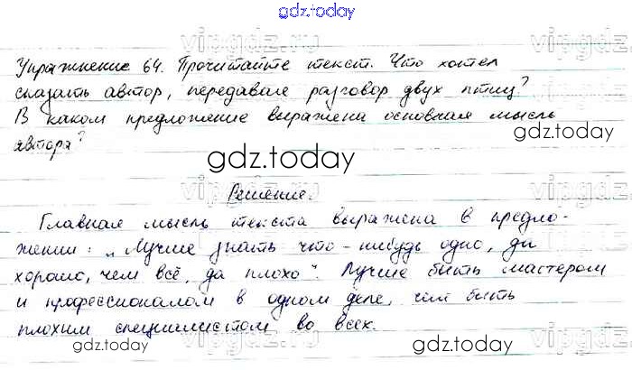 На страницах сайта gdz.today вы найдете учебный и вспомогательный материал, направленный на улучшения знаний школьной программы. ГДЗ - онлайн мир знаний Упражнения Часть 1 64 Учебнику по Русскому языку для 6 класса Баранов, Ладыженская Просвещение, Просвещение 2015, 2022