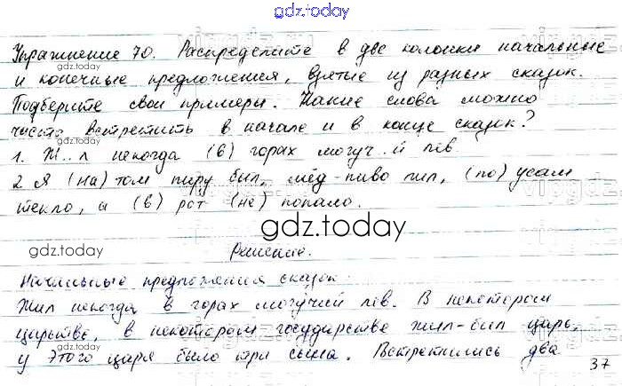 На страницах сайта gdz.today вы найдете учебный и вспомогательный материал, направленный на улучшения знаний школьной программы. ГДЗ - онлайн мир знаний Упражнения Часть 1 70 Учебнику по Русскому языку для 6 класса Баранов, Ладыженская Просвещение, Просвещение 2015, 2022