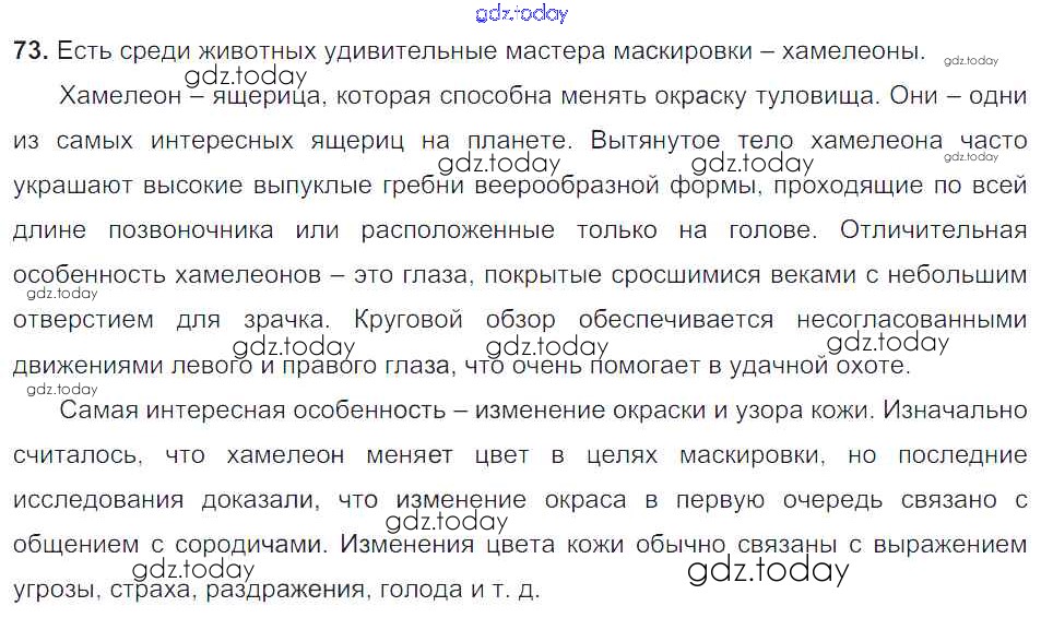На страницах сайта gdz.today вы найдете учебный и вспомогательный материал, направленный на улучшения знаний школьной программы. ГДЗ - онлайн мир знаний Упражнения Часть 1 73 Учебнику по Русскому языку для 6 класса Баранов, Ладыженская Просвещение, Просвещение 2015, 2022