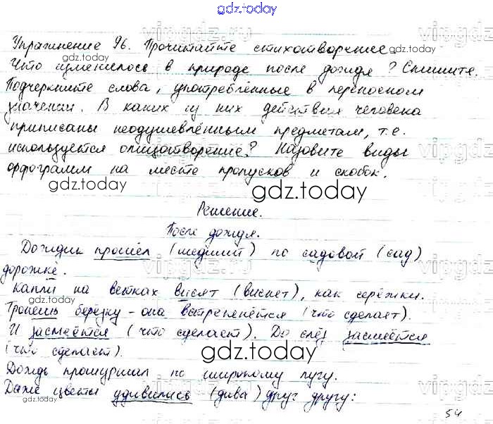 На страницах сайта gdz.today вы найдете учебный и вспомогательный материал, направленный на улучшения знаний школьной программы. ГДЗ - онлайн мир знаний Упражнения Часть 1 96 Учебнику по Русскому языку для 6 класса Баранов, Ладыженская Просвещение, Просвещение 2015, 2022