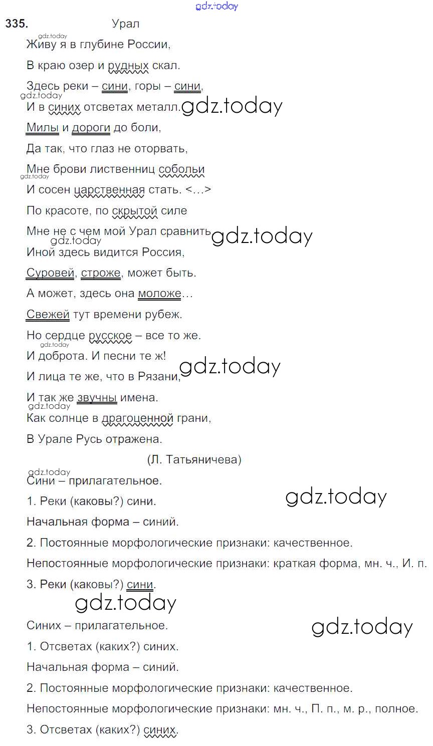 На страницах сайта gdz.today вы найдете учебный и вспомогательный материал, направленный на улучшения знаний школьной программы. ГДЗ - онлайн мир знаний Упражнения Часть 2 335 Учебнику по Русскому языку для 6 класса Баранов, Ладыженская Просвещение, Просвещение 2015, 2022