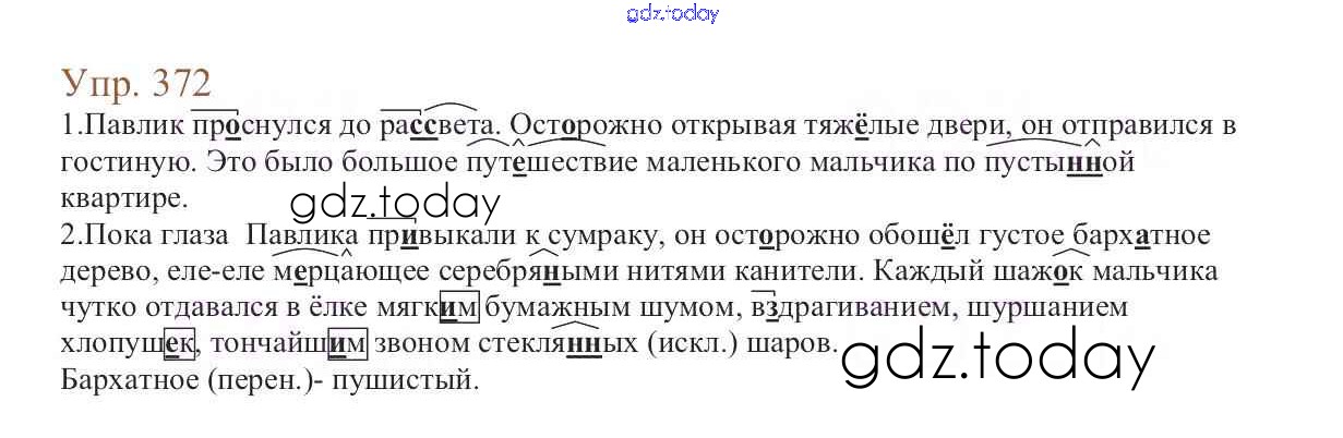 На страницах сайта gdz.today вы найдете учебный и вспомогательный материал, направленный на улучшения знаний школьной программы. ГДЗ - онлайн мир знаний Упражнения Часть 2 372 Учебнику по Русскому языку для 6 класса Баранов, Ладыженская Просвещение, Просвещение 2015, 2022