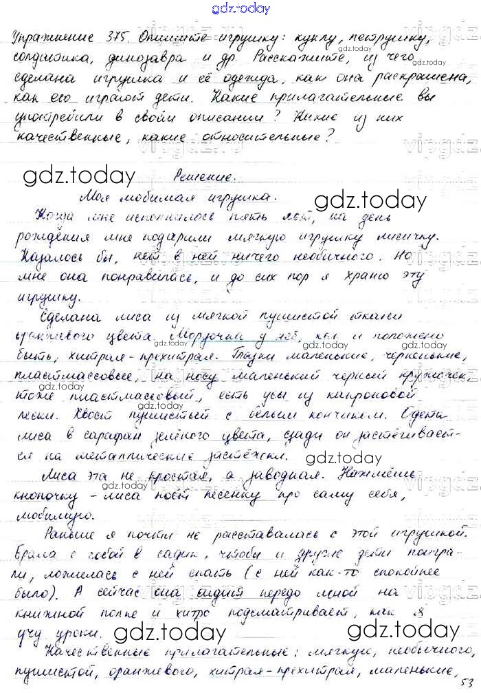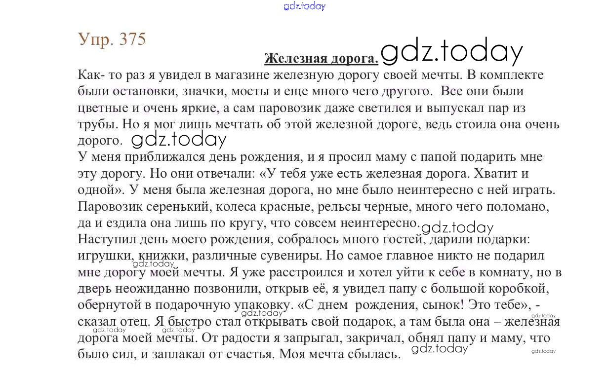 На страницах сайта gdz.today вы найдете учебный и вспомогательный материал, направленный на улучшения знаний школьной программы. ГДЗ - онлайн мир знаний Упражнения Часть 2 375 Учебнику по Русскому языку для 6 класса Баранов, Ладыженская Просвещение, Просвещение 2015, 2022