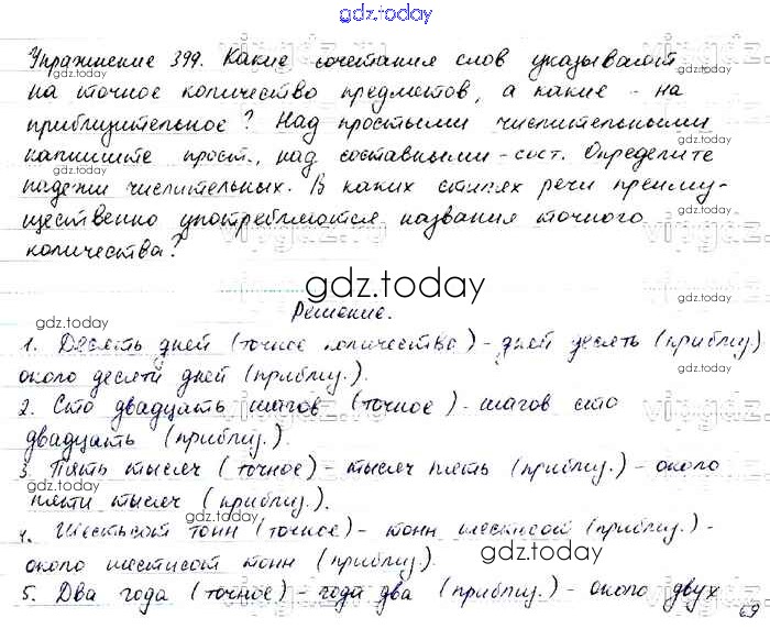 На страницах сайта gdz.today вы найдете учебный и вспомогательный материал, направленный на улучшения знаний школьной программы. ГДЗ - онлайн мир знаний Упражнения Часть 2 399 Учебнику по Русскому языку для 6 класса Баранов, Ладыженская Просвещение, Просвещение 2015, 2022
