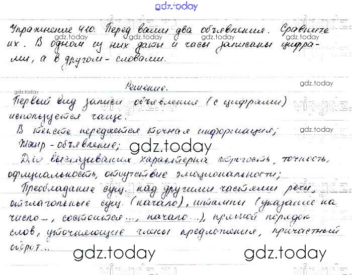 На страницах сайта gdz.today вы найдете учебный и вспомогательный материал, направленный на улучшения знаний школьной программы. ГДЗ - онлайн мир знаний Упражнения Часть 2 410 Учебнику по Русскому языку для 6 класса Баранов, Ладыженская Просвещение, Просвещение 2015, 2022