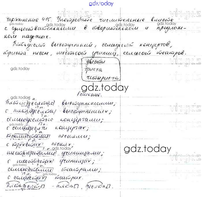 На страницах сайта gdz.today вы найдете учебный и вспомогательный материал, направленный на улучшения знаний школьной программы. ГДЗ - онлайн мир знаний Упражнения Часть 2 415 Учебнику по Русскому языку для 6 класса Баранов, Ладыженская Просвещение, Просвещение 2015, 2022