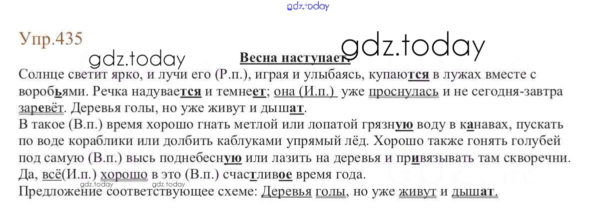 На страницах сайта gdz.today вы найдете учебный и вспомогательный материал, направленный на улучшения знаний школьной программы. ГДЗ - онлайн мир знаний Упражнения Часть 2 435 Учебнику по Русскому языку для 6 класса Баранов, Ладыженская Просвещение, Просвещение 2015, 2022