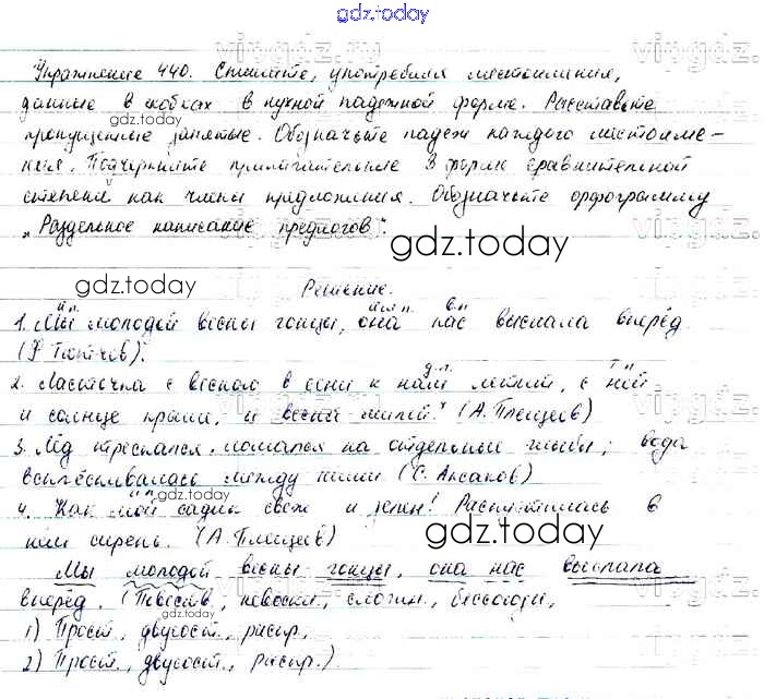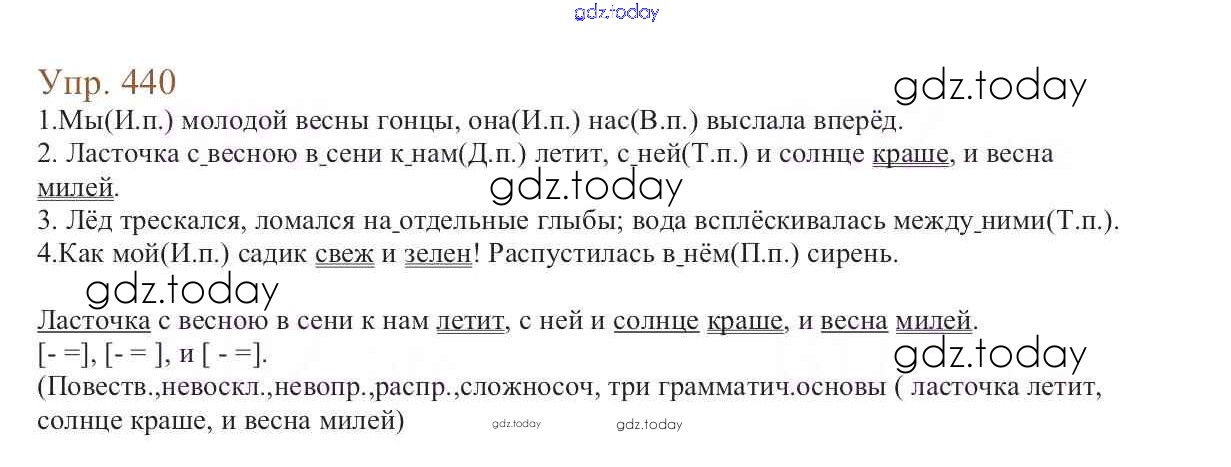 На страницах сайта gdz.today вы найдете учебный и вспомогательный материал, направленный на улучшения знаний школьной программы. ГДЗ - онлайн мир знаний Упражнения Часть 2 440 Учебнику по Русскому языку для 6 класса Баранов, Ладыженская Просвещение, Просвещение 2015, 2022