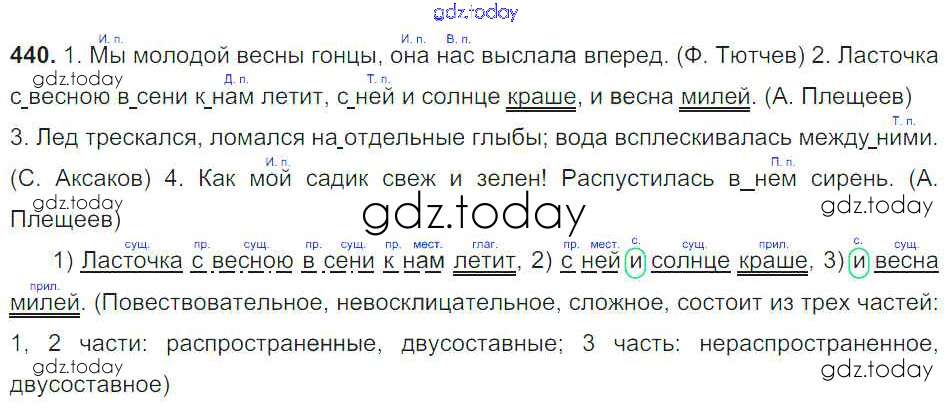 Ответы к Упражнения Часть 2 440 Учебнику по Русскому языку для 6 класса Баранов, Ладыженская Просвещение, Просвещение 2015, 2022