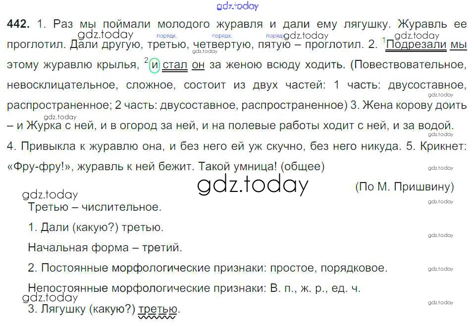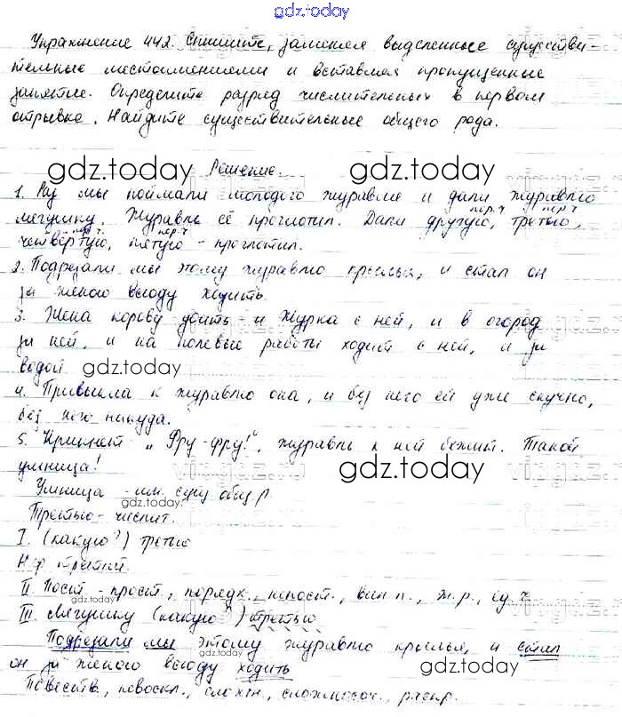 На страницах сайта gdz.today вы найдете учебный и вспомогательный материал, направленный на улучшения знаний школьной программы. ГДЗ - онлайн мир знаний Упражнения Часть 2 442 Учебнику по Русскому языку для 6 класса Баранов, Ладыженская Просвещение, Просвещение 2015, 2022