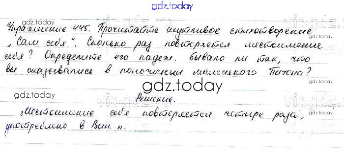 На страницах сайта gdz.today вы найдете учебный и вспомогательный материал, направленный на улучшения знаний школьной программы. ГДЗ - онлайн мир знаний Упражнения Часть 2 445 Учебнику по Русскому языку для 6 класса Баранов, Ладыженская Просвещение, Просвещение 2015, 2022