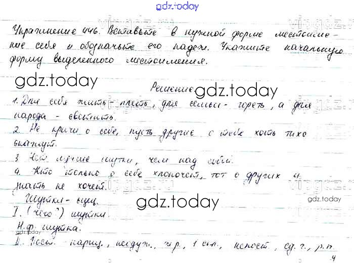 На страницах сайта gdz.today вы найдете учебный и вспомогательный материал, направленный на улучшения знаний школьной программы. ГДЗ - онлайн мир знаний Упражнения Часть 2 446 Учебнику по Русскому языку для 6 класса Баранов, Ладыженская Просвещение, Просвещение 2015, 2022