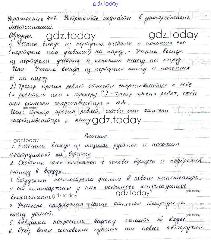 На страницах сайта gdz.today вы найдете учебный и вспомогательный материал, направленный на улучшения знаний школьной программы. ГДЗ - онлайн мир знаний Упражнения Часть 2 447 Учебнику по Русскому языку для 6 класса Баранов, Ладыженская Просвещение, Просвещение 2015, 2022