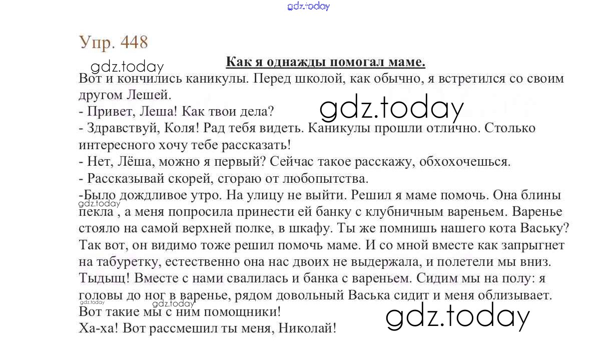 На страницах сайта gdz.today вы найдете учебный и вспомогательный материал, направленный на улучшения знаний школьной программы. ГДЗ - онлайн мир знаний Упражнения Часть 2 448 Учебнику по Русскому языку для 6 класса Баранов, Ладыженская Просвещение, Просвещение 2015, 2022