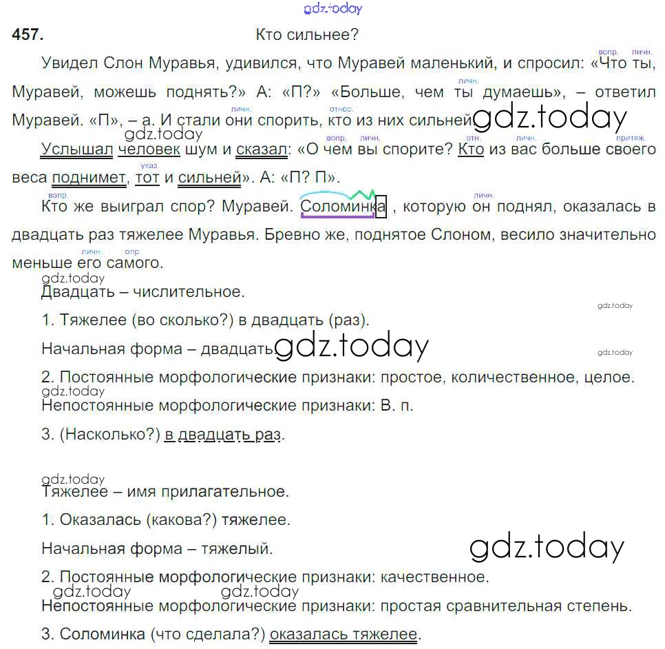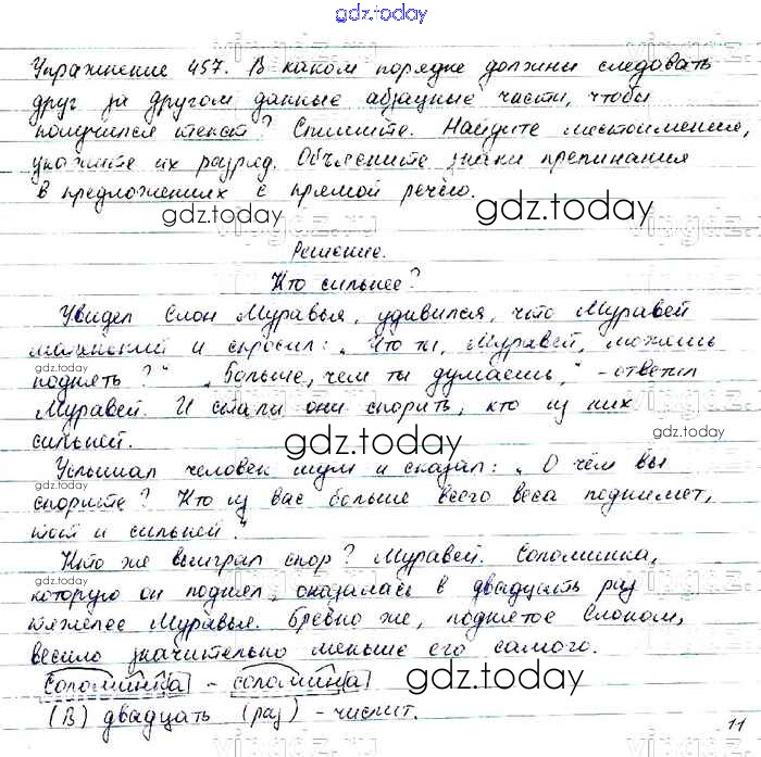 На страницах сайта gdz.today вы найдете учебный и вспомогательный материал, направленный на улучшения знаний школьной программы. ГДЗ - онлайн мир знаний Упражнения Часть 2 457 Учебнику по Русскому языку для 6 класса Баранов, Ладыженская Просвещение, Просвещение 2015, 2022