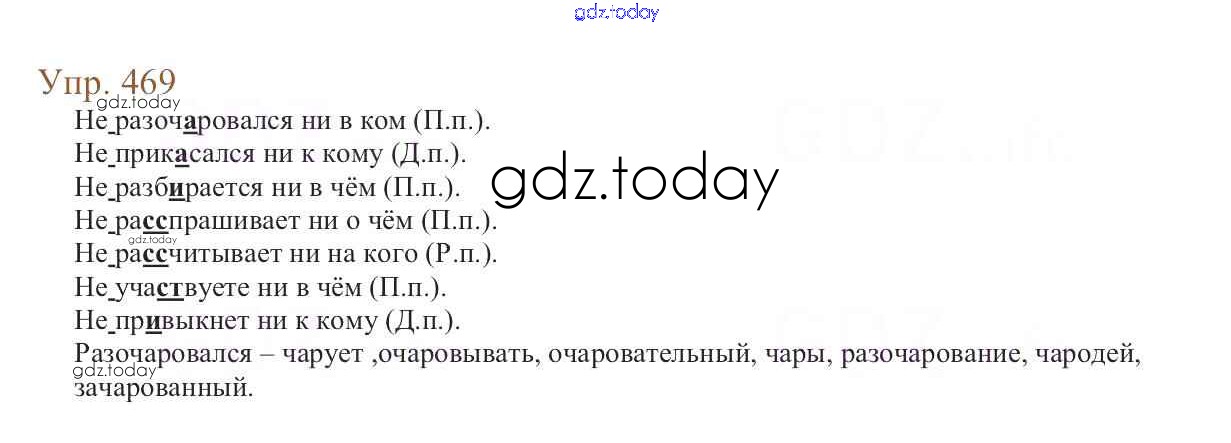 На страницах сайта gdz.today вы найдете учебный и вспомогательный материал, направленный на улучшения знаний школьной программы. ГДЗ - онлайн мир знаний Упражнения Часть 2 469 Учебнику по Русскому языку для 6 класса Баранов, Ладыженская Просвещение, Просвещение 2015, 2022