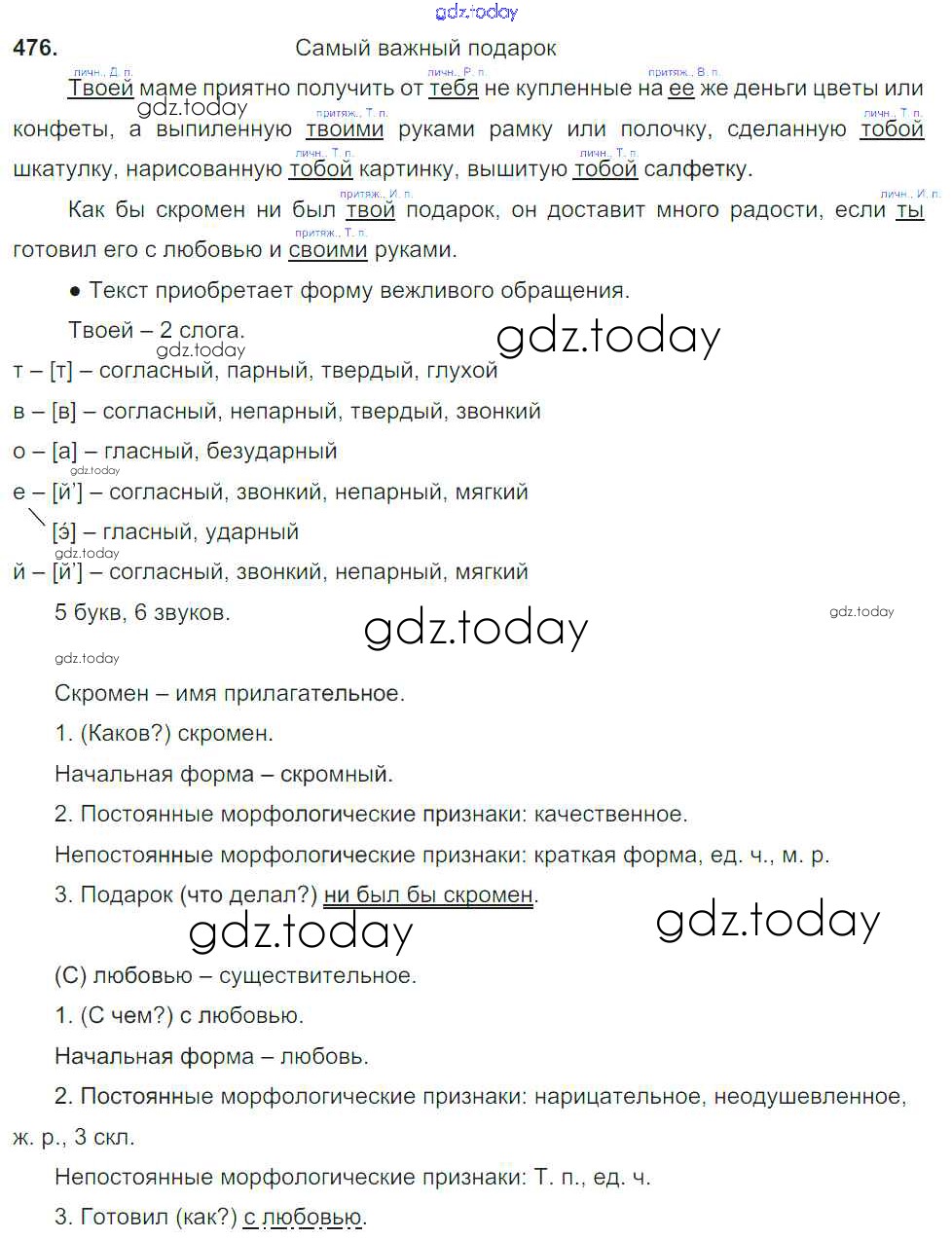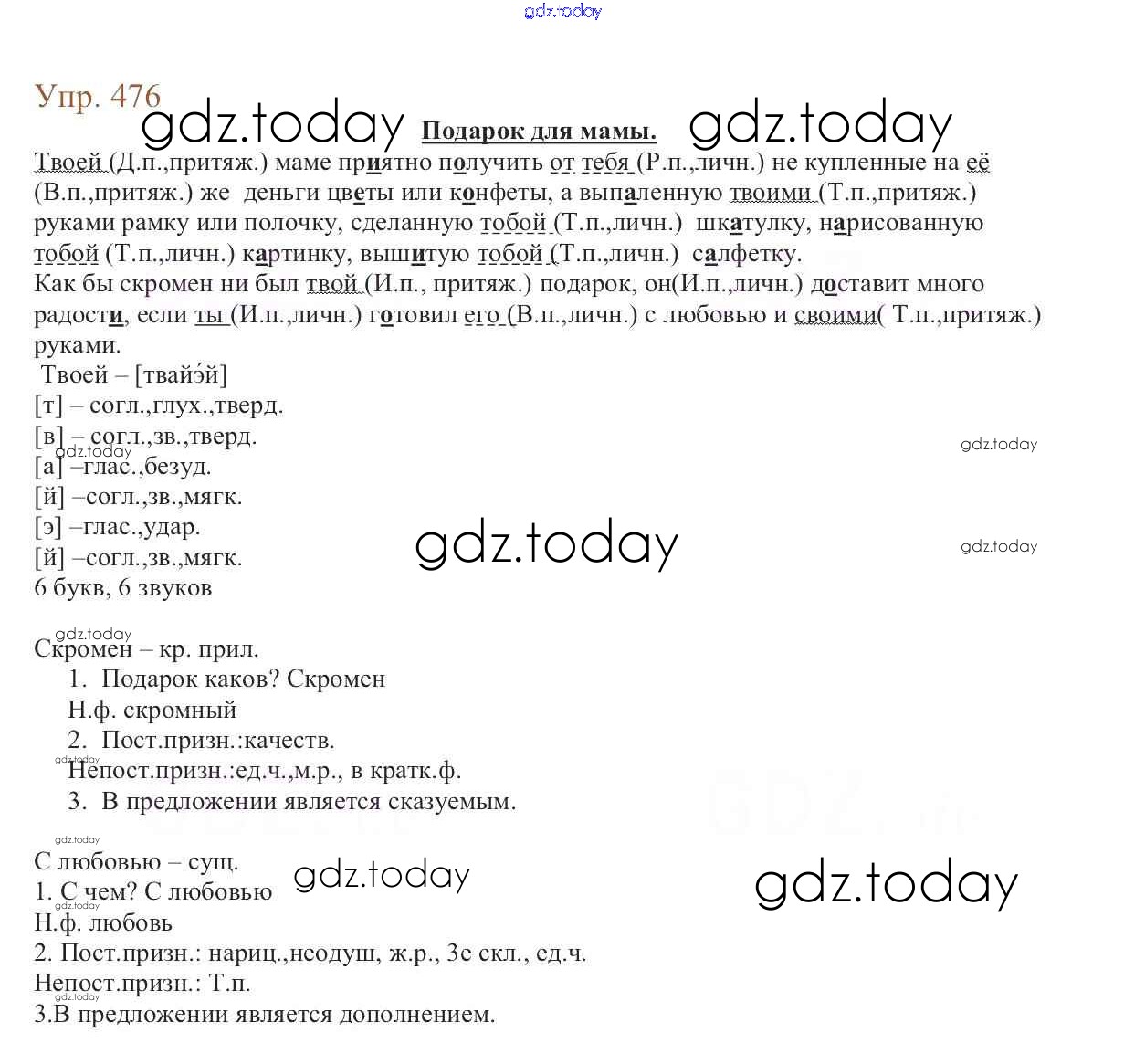На страницах сайта gdz.today вы найдете учебный и вспомогательный материал, направленный на улучшения знаний школьной программы. ГДЗ - онлайн мир знаний Упражнения Часть 2 476 Учебнику по Русскому языку для 6 класса Баранов, Ладыженская Просвещение, Просвещение 2015, 2022