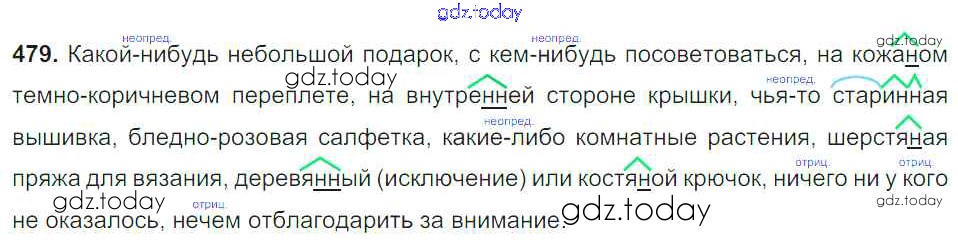 На страницах сайта gdz.today вы найдете учебный и вспомогательный материал, направленный на улучшения знаний школьной программы. ГДЗ - онлайн мир знаний Упражнения Часть 2 479 Учебнику по Русскому языку для 6 класса Баранов, Ладыженская Просвещение, Просвещение 2015, 2022