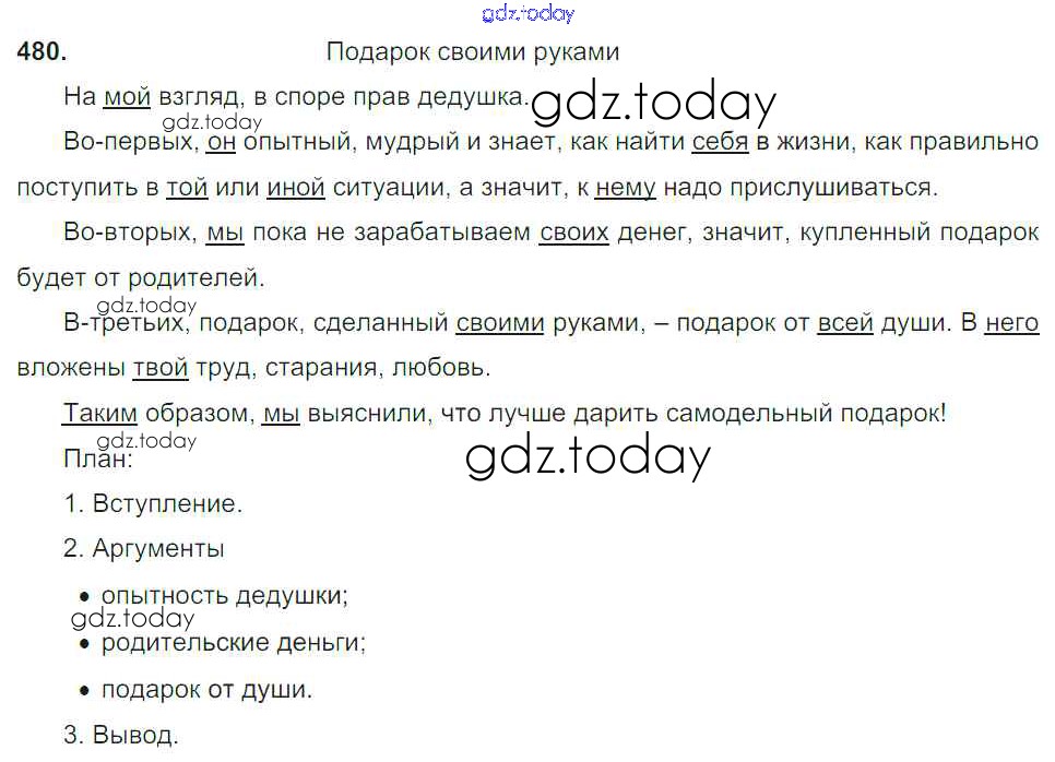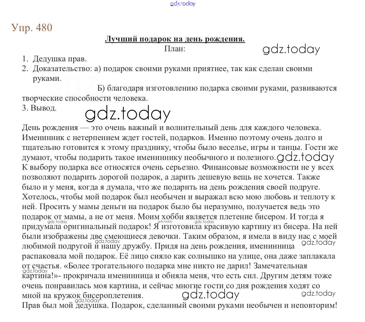 На страницах сайта gdz.today вы найдете учебный и вспомогательный материал, направленный на улучшения знаний школьной программы. ГДЗ - онлайн мир знаний Упражнения Часть 2 480 Учебнику по Русскому языку для 6 класса Баранов, Ладыженская Просвещение, Просвещение 2015, 2022