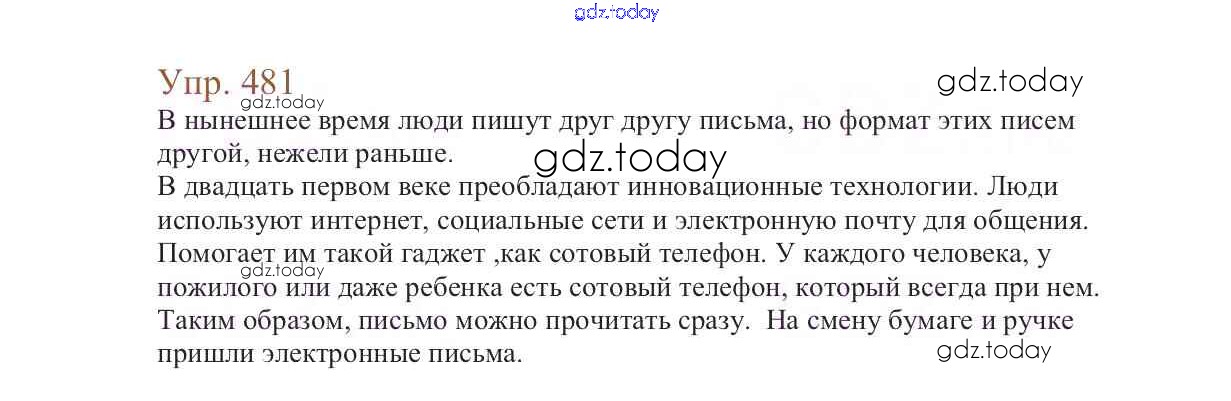 На страницах сайта gdz.today вы найдете учебный и вспомогательный материал, направленный на улучшения знаний школьной программы. ГДЗ - онлайн мир знаний Упражнения Часть 2 481 Учебнику по Русскому языку для 6 класса Баранов, Ладыженская Просвещение, Просвещение 2015, 2022
