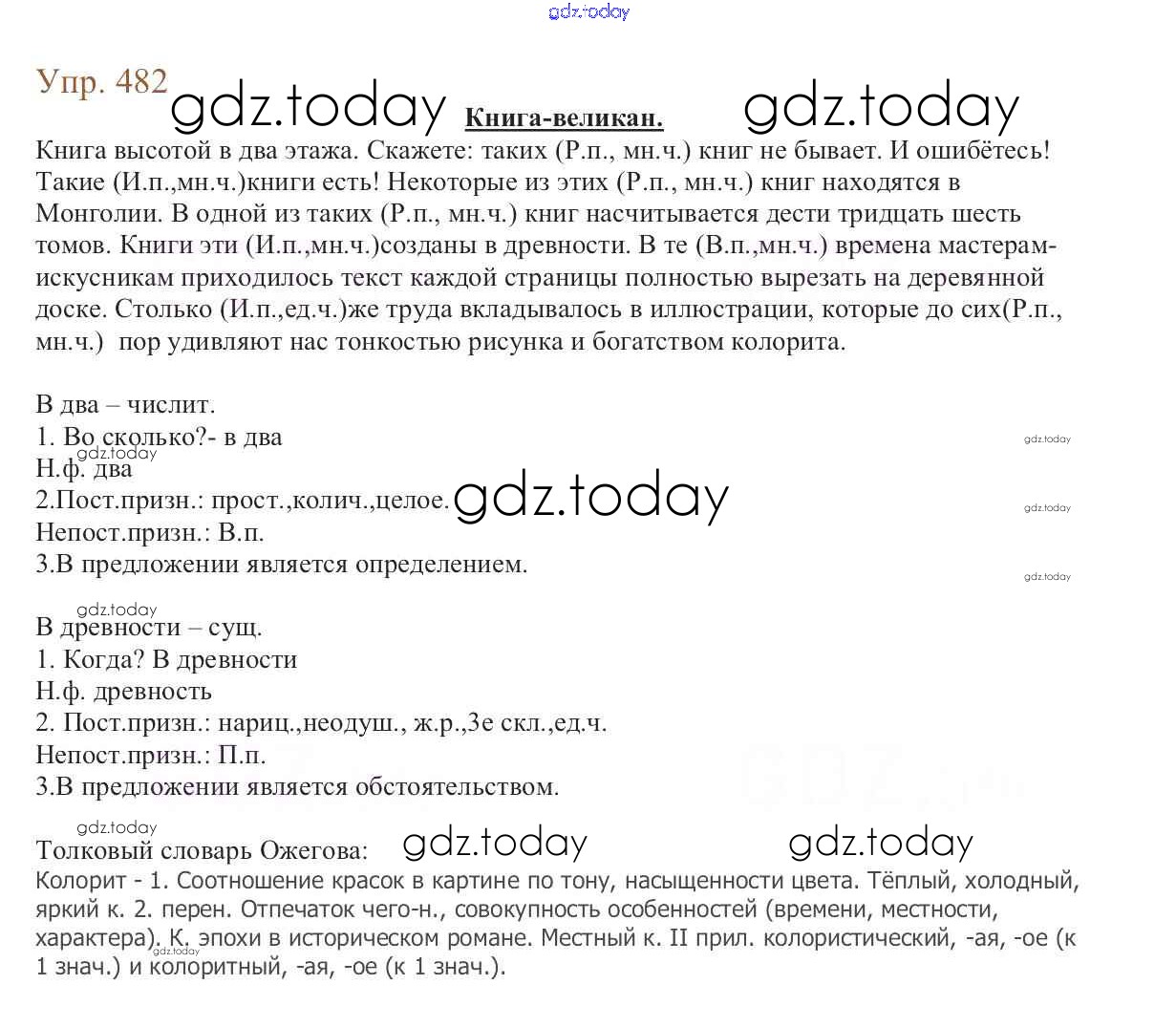 На страницах сайта gdz.today вы найдете учебный и вспомогательный материал, направленный на улучшения знаний школьной программы. ГДЗ - онлайн мир знаний Упражнения Часть 2 482 Учебнику по Русскому языку для 6 класса Баранов, Ладыженская Просвещение, Просвещение 2015, 2022