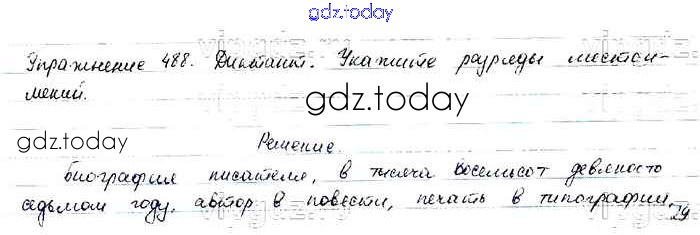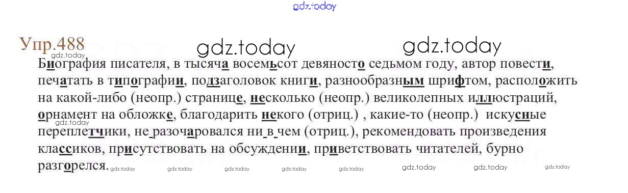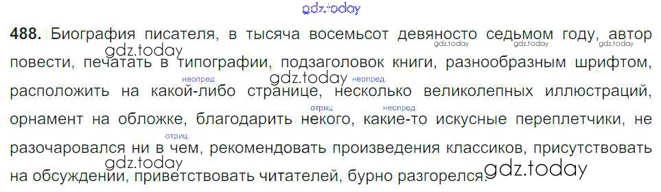 На страницах сайта gdz.today вы найдете учебный и вспомогательный материал, направленный на улучшения знаний школьной программы. ГДЗ - онлайн мир знаний Упражнения Часть 2 488 Учебнику по Русскому языку для 6 класса Баранов, Ладыженская Просвещение, Просвещение 2015, 2022