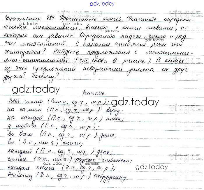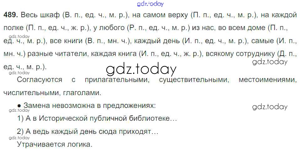 На страницах сайта gdz.today вы найдете учебный и вспомогательный материал, направленный на улучшения знаний школьной программы. ГДЗ - онлайн мир знаний Упражнения Часть 2 489 Учебнику по Русскому языку для 6 класса Баранов, Ладыженская Просвещение, Просвещение 2015, 2022