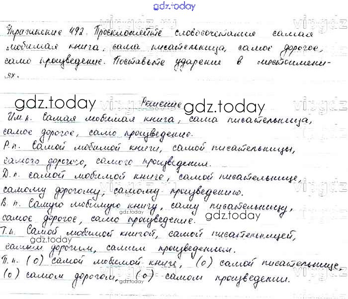На страницах сайта gdz.today вы найдете учебный и вспомогательный материал, направленный на улучшения знаний школьной программы. ГДЗ - онлайн мир знаний Упражнения Часть 2 492 Учебнику по Русскому языку для 6 класса Баранов, Ладыженская Просвещение, Просвещение 2015, 2022
