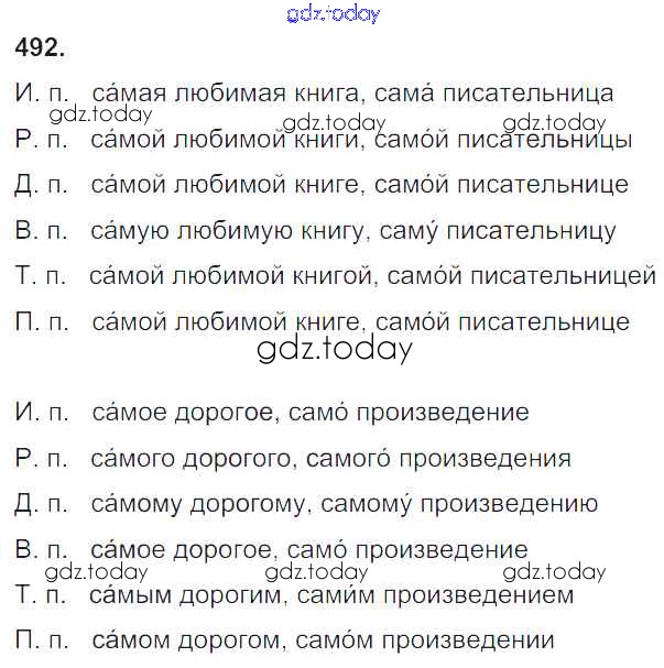 Ответы к Упражнения Часть 2 492 Учебнику по Русскому языку для 6 класса Баранов, Ладыженская Просвещение, Просвещение 2015, 2022