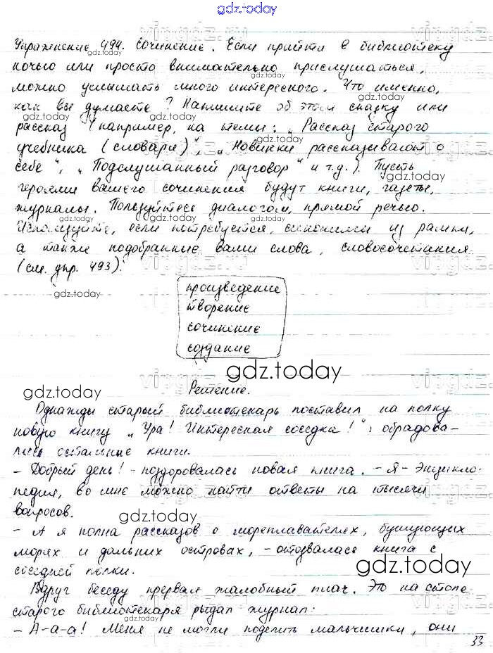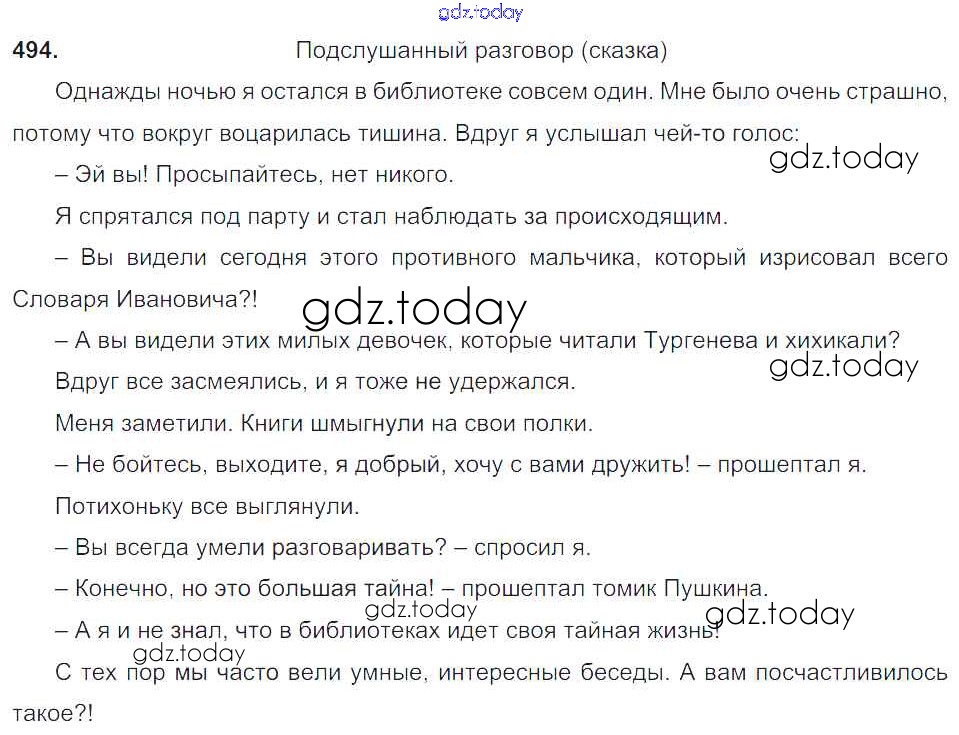 На страницах сайта gdz.today вы найдете учебный и вспомогательный материал, направленный на улучшения знаний школьной программы. ГДЗ - онлайн мир знаний Упражнения Часть 2 494 Учебнику по Русскому языку для 6 класса Баранов, Ладыженская Просвещение, Просвещение 2015, 2022