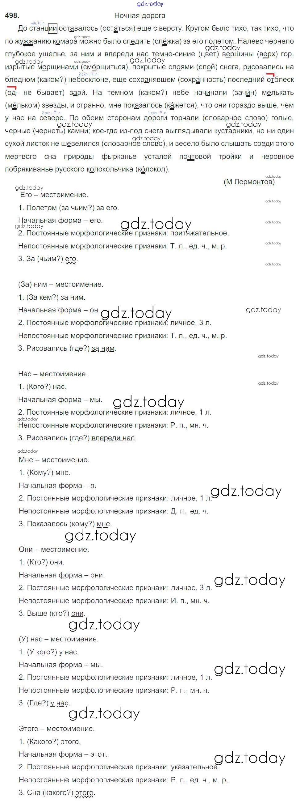 На страницах сайта gdz.today вы найдете учебный и вспомогательный материал, направленный на улучшения знаний школьной программы. ГДЗ - онлайн мир знаний Упражнения Часть 2 498 Учебнику по Русскому языку для 6 класса Баранов, Ладыженская Просвещение, Просвещение 2015, 2022