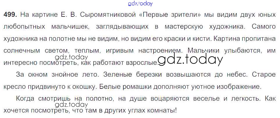 На страницах сайта gdz.today вы найдете учебный и вспомогательный материал, направленный на улучшения знаний школьной программы. ГДЗ - онлайн мир знаний Упражнения Часть 2 499 Учебнику по Русскому языку для 6 класса Баранов, Ладыженская Просвещение, Просвещение 2015, 2022