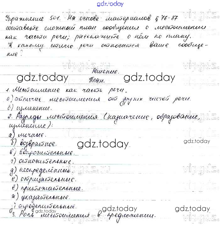 На страницах сайта gdz.today вы найдете учебный и вспомогательный материал, направленный на улучшения знаний школьной программы. ГДЗ - онлайн мир знаний Упражнения Часть 2 501 Учебнику по Русскому языку для 6 класса Баранов, Ладыженская Просвещение, Просвещение 2015, 2022