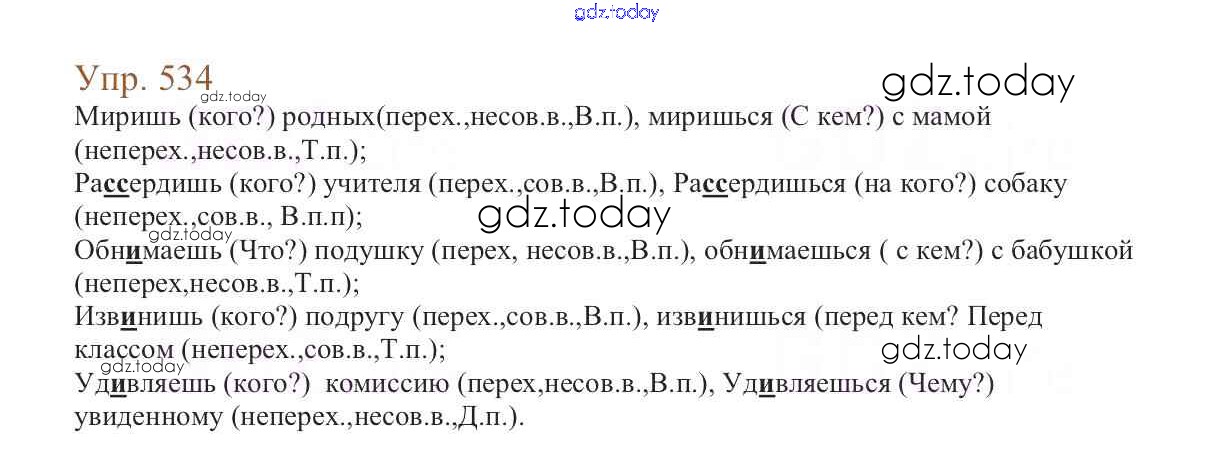 Ответы к Упражнения Часть 2 534 Учебнику по Русскому языку для 6 класса Баранов, Ладыженская Просвещение, Просвещение 2015, 2022