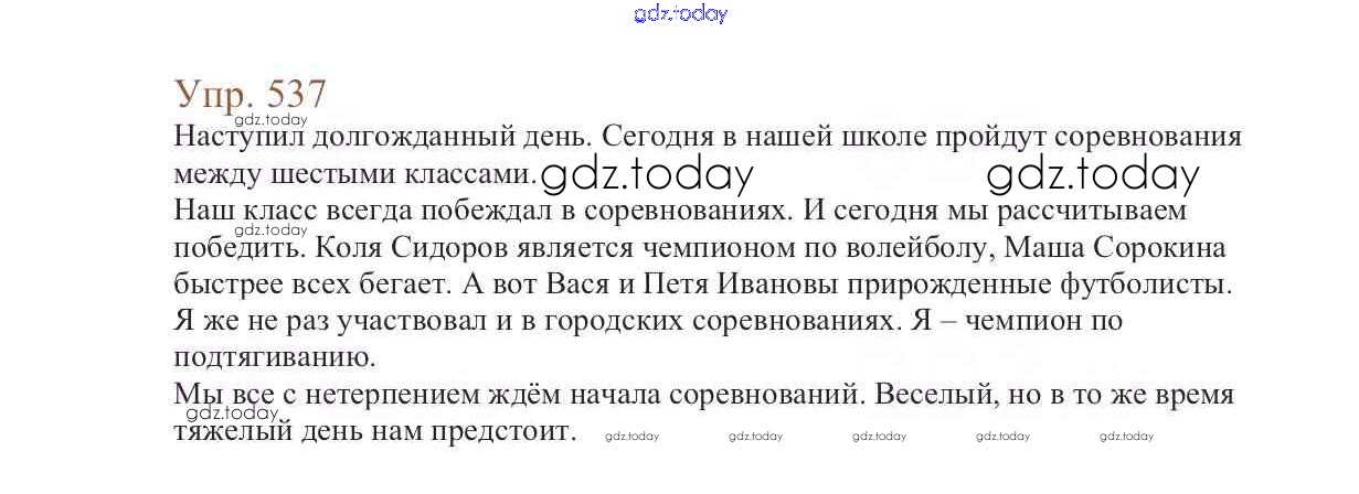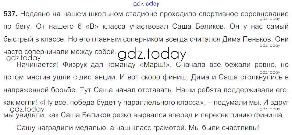 На страницах сайта gdz.today вы найдете учебный и вспомогательный материал, направленный на улучшения знаний школьной программы. ГДЗ - онлайн мир знаний Упражнения Часть 2 537 Учебнику по Русскому языку для 6 класса Баранов, Ладыженская Просвещение, Просвещение 2015, 2022
