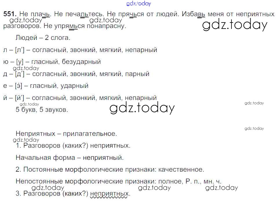 На страницах сайта gdz.today вы найдете учебный и вспомогательный материал, направленный на улучшения знаний школьной программы. ГДЗ - онлайн мир знаний Упражнения Часть 2 551 Учебнику по Русскому языку для 6 класса Баранов, Ладыженская Просвещение, Просвещение 2015, 2022