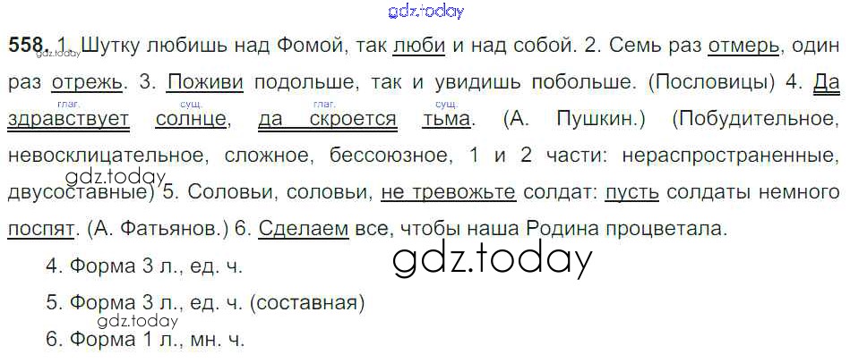 На страницах сайта gdz.today вы найдете учебный и вспомогательный материал, направленный на улучшения знаний школьной программы. ГДЗ - онлайн мир знаний Упражнения Часть 2 558 Учебнику по Русскому языку для 6 класса Баранов, Ладыженская Просвещение, Просвещение 2015, 2022