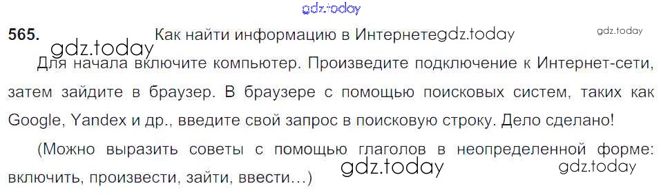 На страницах сайта gdz.today вы найдете учебный и вспомогательный материал, направленный на улучшения знаний школьной программы. ГДЗ - онлайн мир знаний Упражнения Часть 2 565 Учебнику по Русскому языку для 6 класса Баранов, Ладыженская Просвещение, Просвещение 2015, 2022